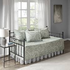 It has a rounded panel upholstered and quilted decorative buttons. Northern exposure daybed bedding collection. For some sleek, chic style, choose nautica® sheet sets which feature bold colors and a handsome appearance. Our daybed covers include many animal print patterns including zebra, solid colors, denim and colorful daybed comforters and sheet sets in all colors of the rainbow. Set includes comforter, 2 shams (1 sham in twin/twinxl), 1 oblong, and 1 square decorative pillows. The latest on our store health and safety plans. A square decorative pillow with elegant embroidery and bed skirt adds the finishing touches to the daybed set. Buy products such as comfort spaces kienna 5 piece daybed, 75x39, seafoam at walmart and save. High quality and cheap prices. Daybeds are the perfect solution for kids' rooms, guest rooms or just as an extra spot for seating. For a lively look, select a vibrant comforter set for a pop of color. Make sure to purchase a mattress protector designed to keep you cool. The striped pattern in toned colors fits to the white walls and cream bed's sides and build the elegancy of this interior.